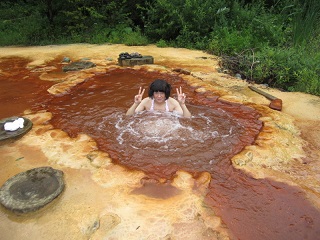 林道を数十分登った先にある、管理されていない温泉で、炭酸と鉄分が多く含まれてます。狭い林道なので、運転に自信がない方は、やめておきましょう。